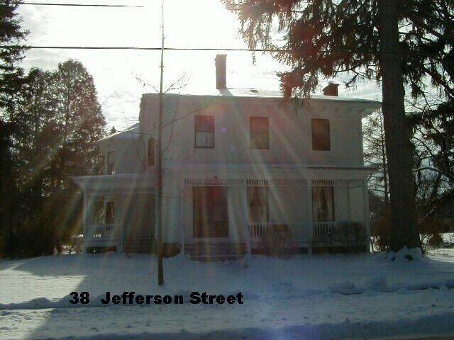 Turn onto Jefferson Street at the foot of the hill north of the cemetery. Thirty-eight Jefferson Street was the home of Minerva Conable, the widow of Benjamin Conable, who supported the cause of suffrage in Warsaw. She traveled to one state convention. Her daughter, Maude Conable and her daughter-in-law, Agnes Gouinlock Conable both lived in this house for different parts of their lives. Both were friends of the Crossetts’ daughters, Julia and Caroline.