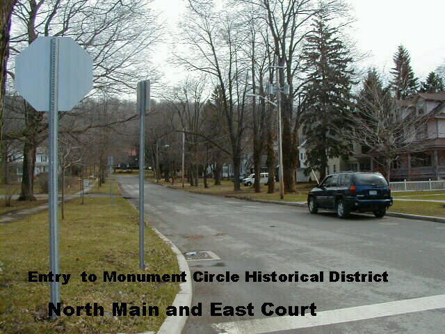 The houses along East Court Street are examples of early twentieth century architecture. Most are homes with Colonial Revival style features.